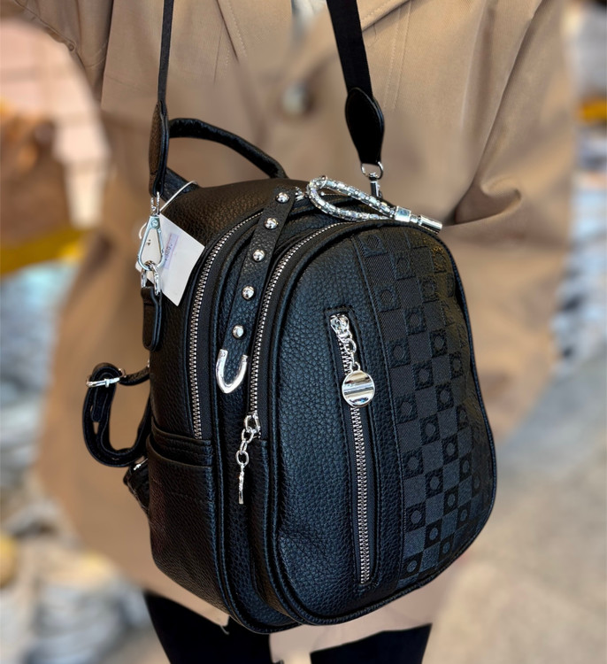 کوله‌ پشتی وکیف زنانه دخترانه طرح‌دار سه رنگ کاربردی (مشکی، کرم، نسکافه ای)