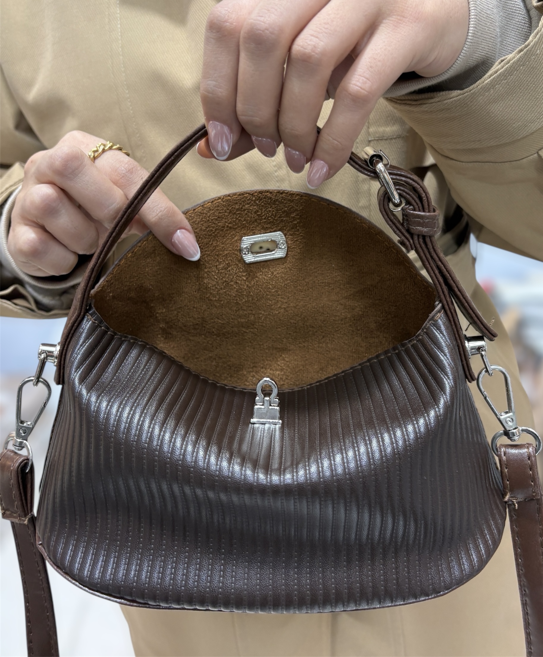 فضای داخلی کیف بهگونهای طراحی شده که وسایل ضروری مانند موبایل، کیف پول، لوازم آرایشی و… بهراحتی داخل آن قرار میگیرند.
