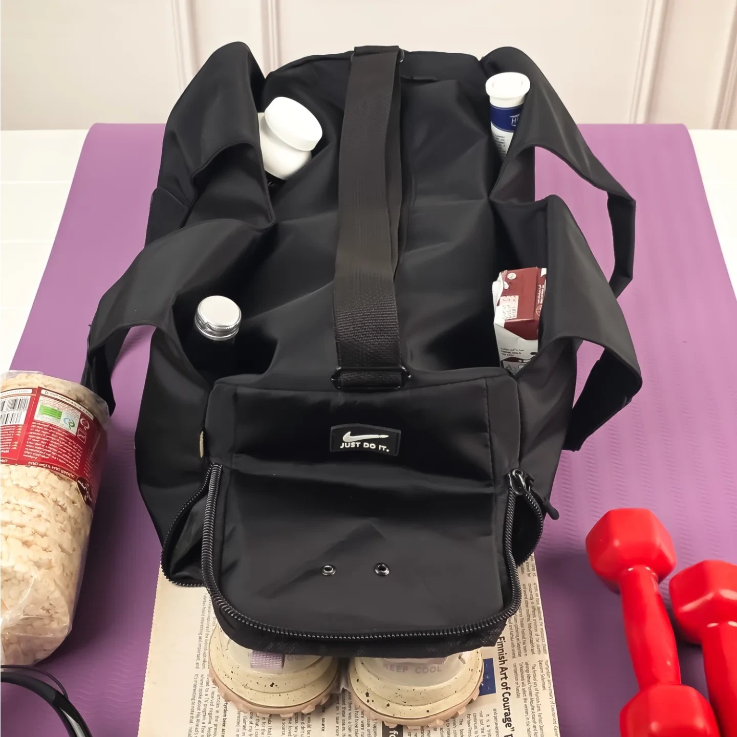طراحی هوشمندانه با چندین محفظه جداگانه باعث میشه وسایل ورزشی، بطری آب، مکملها، لباس و کفش کاملاً مرتب داخل کیف قرار بگیرن.