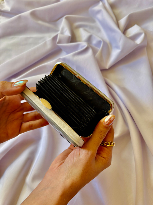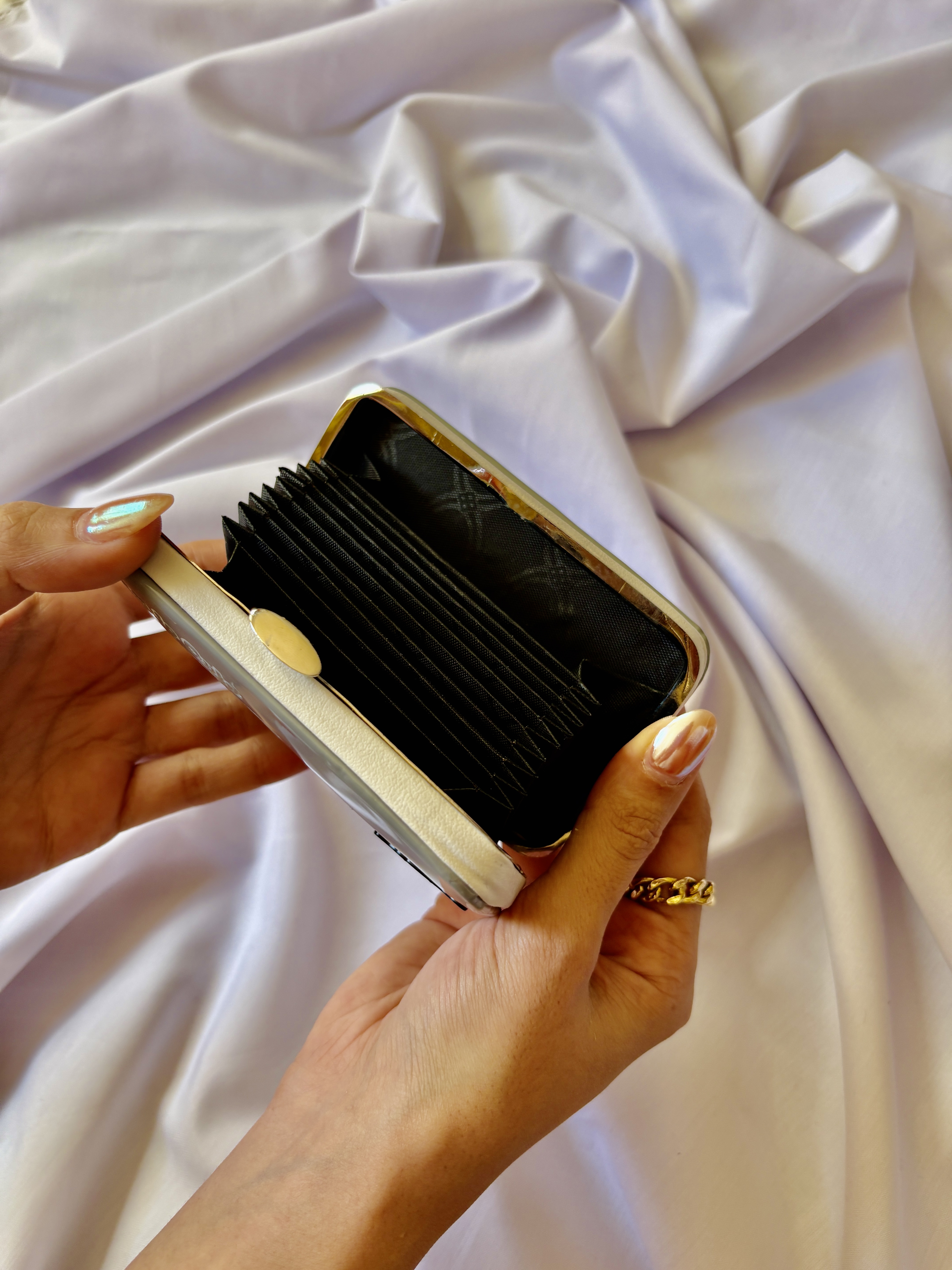 این جاکارتی با طراحی باکسی فلزی و روکش چرم مصنوعی براق، هم شیکه هم مقاوم. قفل دکمهای فشاری باعث میشه باز و بسته شدنش راحت باشه و کارتها داخلش ایمن بمونن.